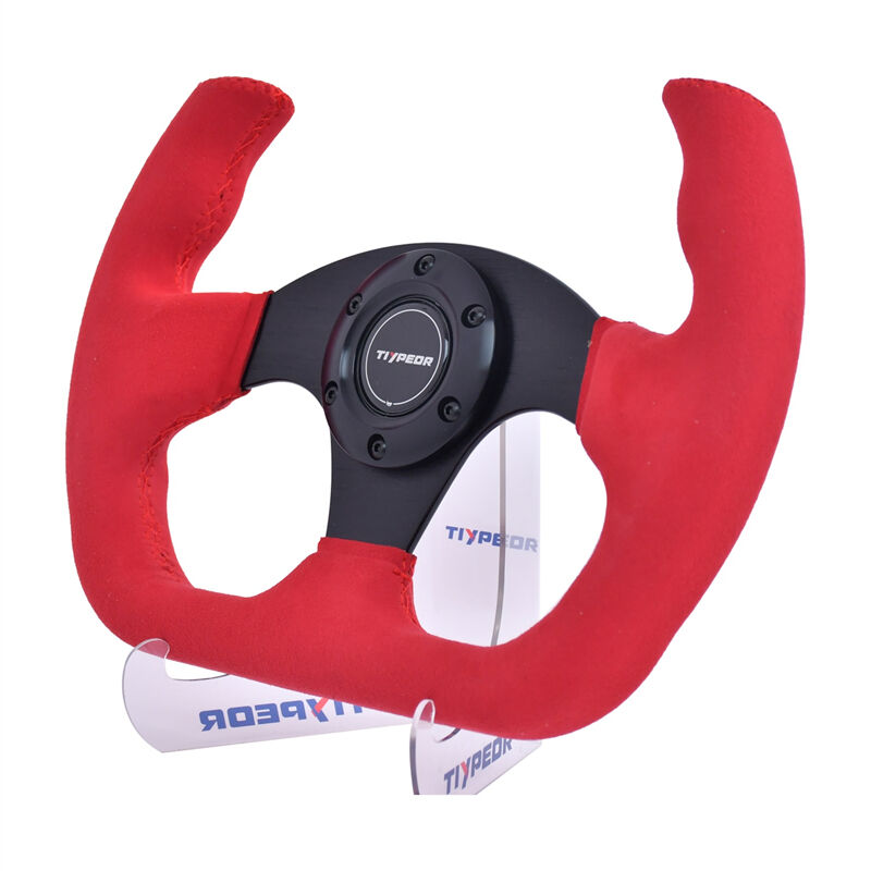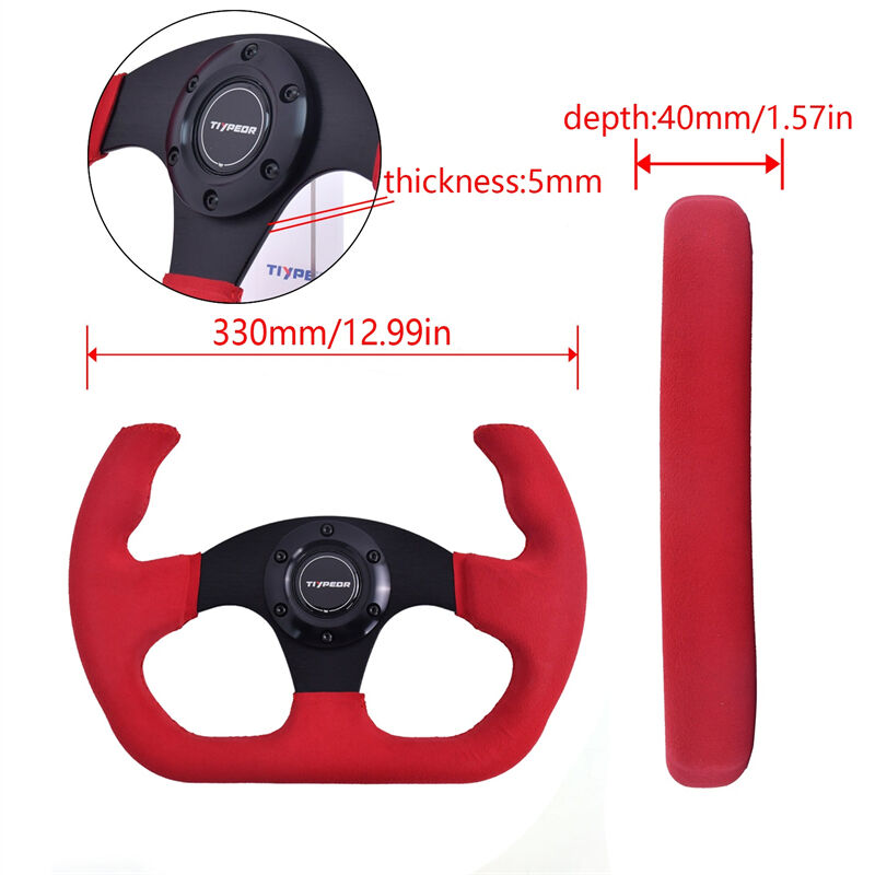 TIYPEOR ゴーカート用赤スエード改造レーシングステアリングホイール 330mm/13インチ (630-14)