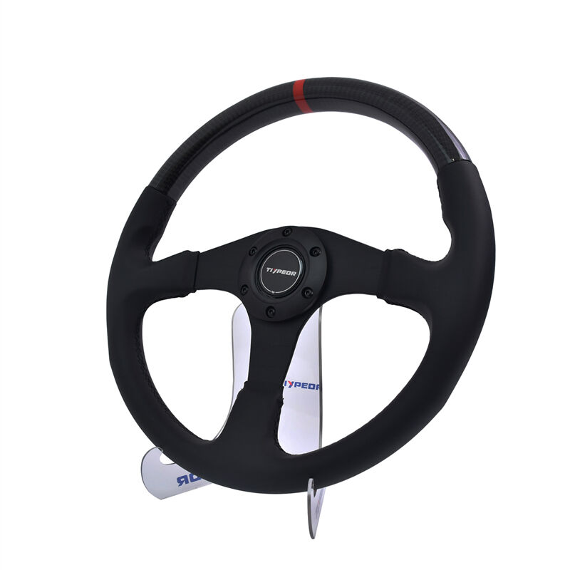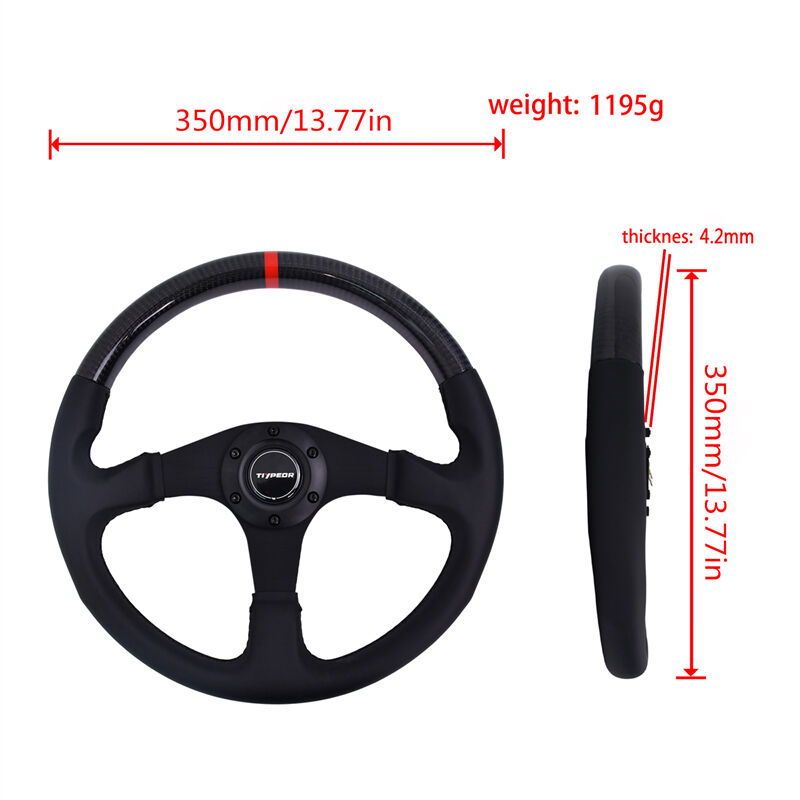 TIYPEOR 자동차 보편적 가죽 카본 파이버 개조 스플라이싱 스티어링 휠 350mm/14인치(586-06)
