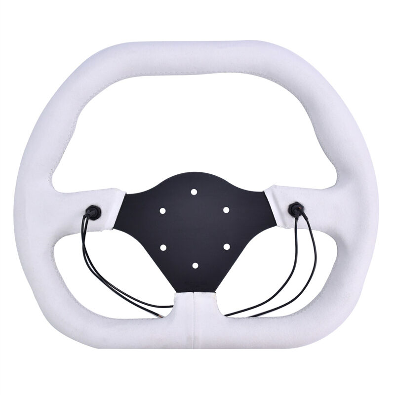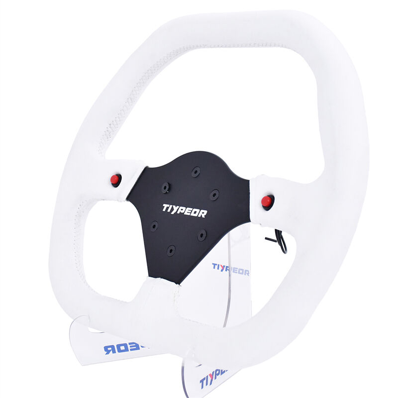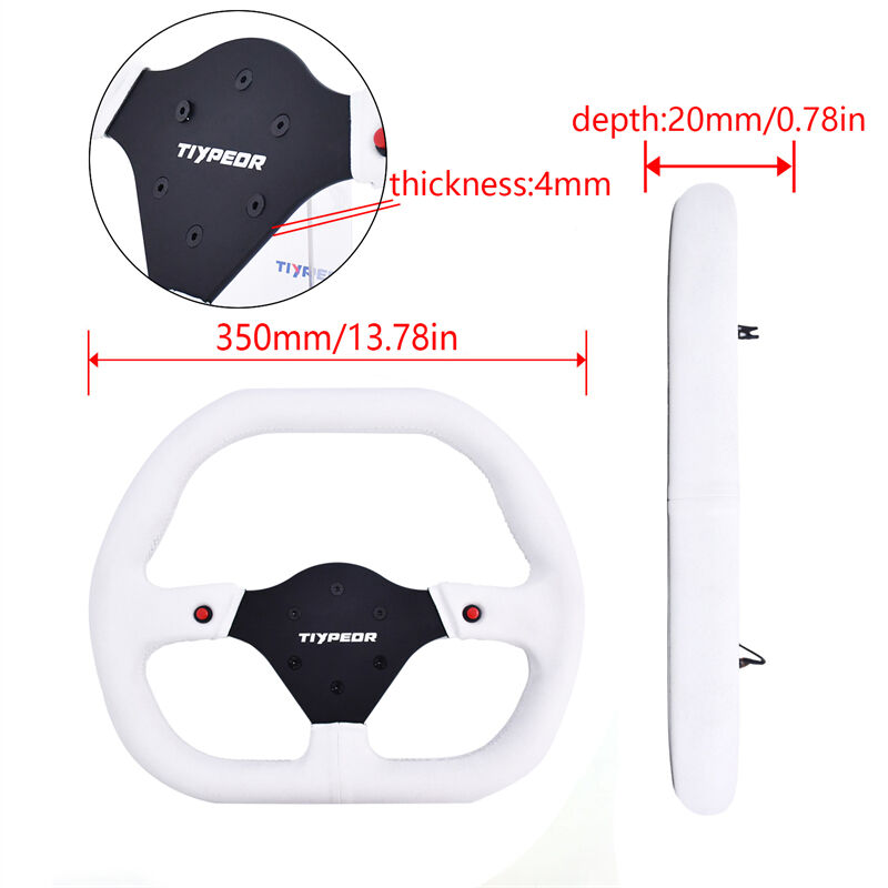 TIYPEOR 자동차용 흰색 스웨이드 수정된 직사각형 스티어링 휠 350mm/13.78인치 (493-07)