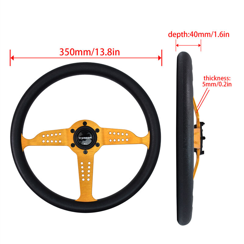 Volante de Corrida TIYPEOR em Couro Sintético Preto PU 350 mm / 13,8 polegadas (474-04)