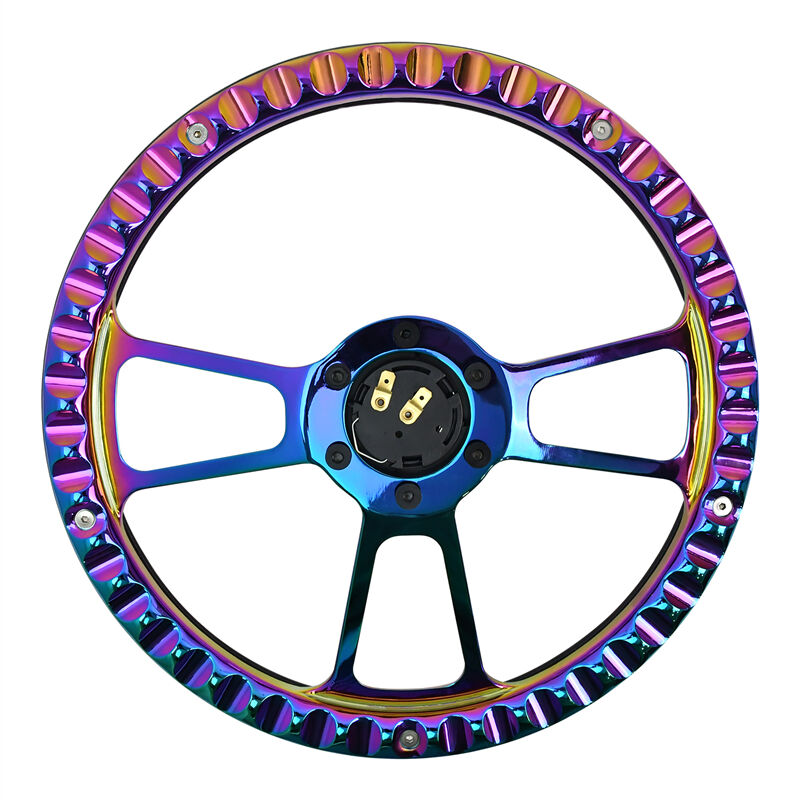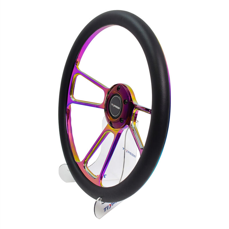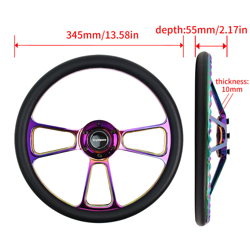 TIYPEOR 345mm/13.58" Биллет Черный Алюминиевый Маслкар - Полуобтянутый Руль с 6 отверстиями и Кнопкой клаксона 4 спицы