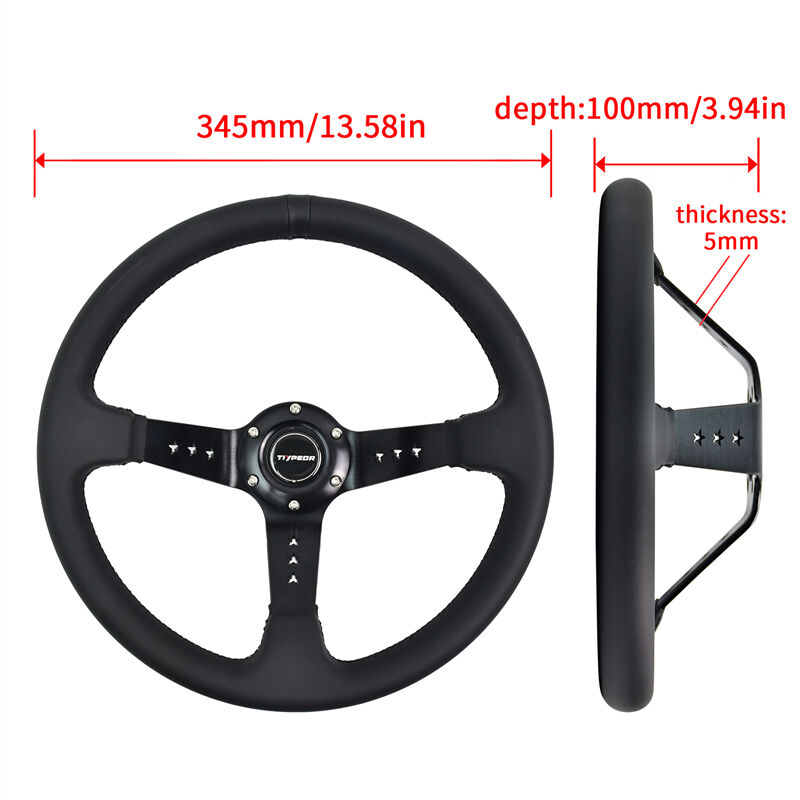 Универсальное рулевое колесо TIYPEOR для автомобиля, 345 мм/13,8", кожаное, JDM Love, с кронштейном, гоночное